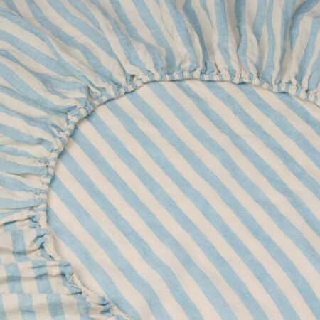 • Kalono 100% Linen Fitted Sheet – Coastal Blue Pembroke Stripe - 25 % Off